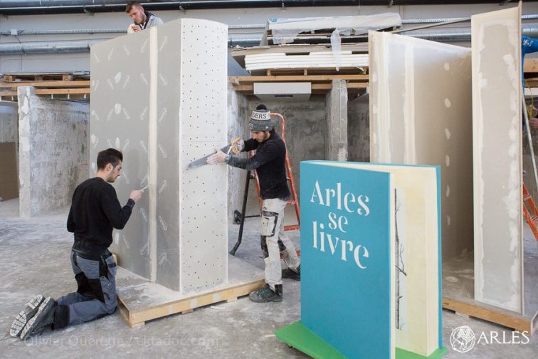 L’ambiance est studieuse. Dans le vaste atelier du CFA-BTP d’Arles, sept des huit apprentis qui travaillent à la réalisation de livres pour le festival Arles se livre, s’activent. Ils ont achevé les quatre petits modèles et finissent les deux formats « géant », qui passeront ensuite entre les mains des apprentis peinture.