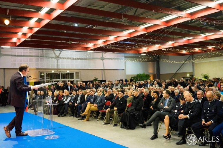 Devant un parterre d’Arlésiens et de quelques gilets jaunes, Hervé Schiavetti a dressé un bilan optimiste de la situation d’Arles. Dans un contexte de disparités sociales et territoriales, la ville connait un nombre de demandeurs d’emploi en baisse depuis plusieurs années, des créations d’emploi grâce à l’arrivée d’entreprises, notamment dans les domaines de la création numérique, de la culture. Le budget de la Ville est équilibré, grâce aux aides à l’investissement de la communauté d’agglomération, de la Région et du Département, aux ressources propres (plus de 800 000 entrées dans les monuments ont généré plus de 2 M. d’euros de ressources). Enfin, le rayonnement d’Arles s’affirme. En 2019, la nouvelle Ecole de la photo ouvrira, en 2020, ce sera au tour du Parc des Ateliers : ces réalisations incarnent cette économie de la culture sur laquelle la Ville a misé depuis longtemps et qui a pris naissance, il y a 50 ans, lorsque Lucien Clergue a fondé les Rencontres de la Photo. « La photographie a été pour Arles un formidable outil de développement » a martelé le maire d’Arles. Dans ce contexte de développement, dans ce territoire si porteur de promesses qu’est la Méditerranée, il serait honteux, a souligné le maire, « qu’on ne fasse rien pour ceux qui viennent mourir sur nos côtes« . Une générosité qui s’impose et qui est aussi, un trait de caractère du territoire.