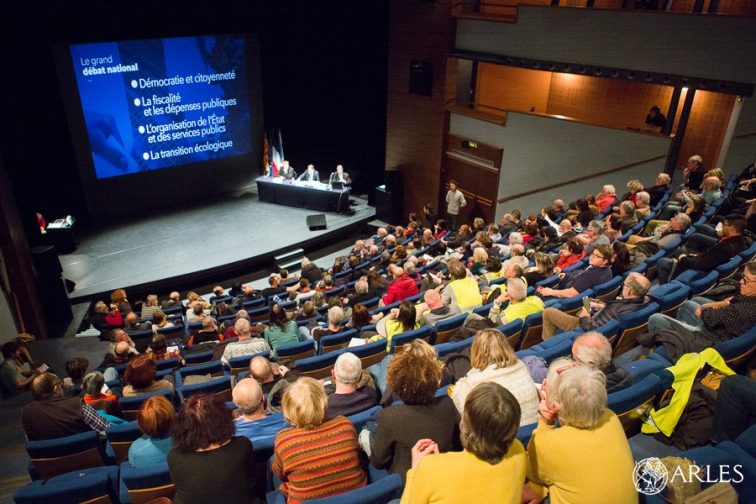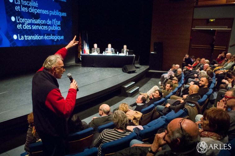 Plus de 200 personnes -et parmi elles quelques gilets jaunes- se sont rendues, le jeudi 14 février, à la réunion publique organisée au théâtre d’Arles dans le cadre du grand débat voulu par le Président de la République. Le maire d’Arles, Hervé Schiavetti, entouré du directeur général des services de la Ville et du directeur de cabinet, a présenté les quatre thèmes retenus pour recueillir les avis et propositions des Français : la fiscalité et les dépenses publiques, la démocratie et la citoyenneté, l’organisation de l’État et des services publics, la transition écologique.