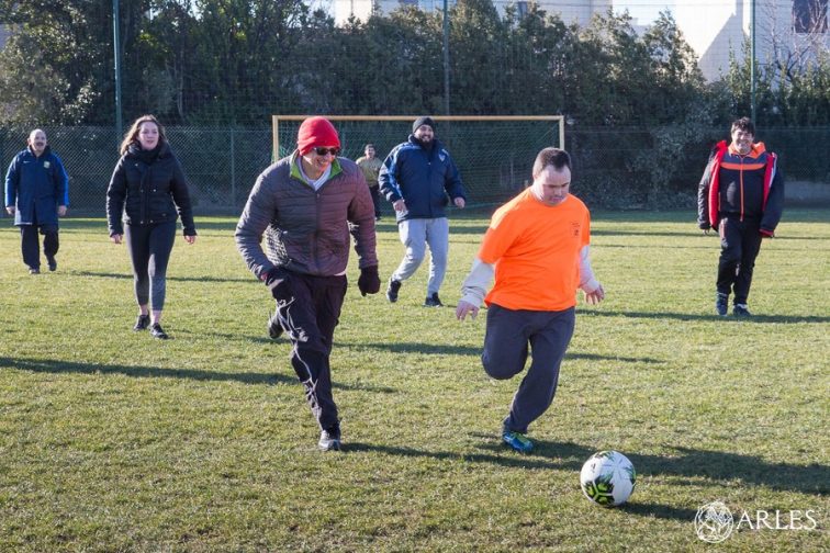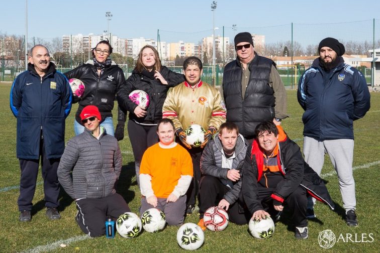 Tous les mardis matin, des sourires communicatifs se multiplient sur la pelouse du stade Louis Brun. On y tape dans le ballon avec une joie rafraîchissante. « Ce sont des joueurs super motivés, avec une énergie formidable » applaudit Damien Delaunay, membre du Comité directeur de l’AC Arles. Avec Max Vanel, dirigeant historique du club, ils viennent de créer une section Sport adapté, en partenariat avec le Foyer de vie Mas Saint-Pierre et l’Asaca (Association sport adapté la Chrysalide Arles). Sept joueurs en situation de handicap mental forment cette nouvelle équipe presque unique en son genre dans la région. « Ils jouaient déjà en-semble dans le cadre du Foyer de vie, mais la différence, c’est qu’ils font désormais de vrais entraînements, avec de vrais entraîneurs de foot, dans un vrai stade. Ce sont des membres du club à part entière » insiste Damien Delaunay. Cindy Pitalis, monitrice – éducatrice au Mas Saint-Pierre, et Sandy Vattier, stagiaire au sein de l’établissement, participent aux entraînements, notamment pour aider les techniciens à « décoder certains comportements ». Mais l’ACA tient désormais à former des éducateurs spécialement pour cette section Sport adapté. « Notre volonté n’est pas de se contenter d’accueillir ces joueurs, mais de leur apporter vraiment quelque chose » poursuit Damien Delaunay.
