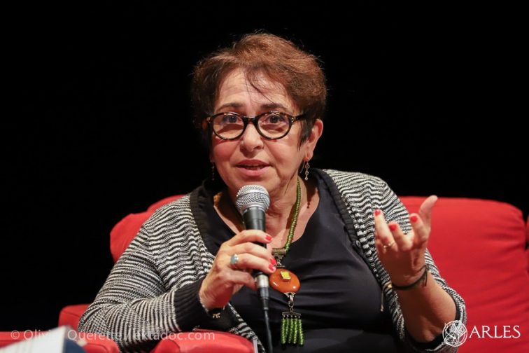 Brigitte Benkemoun, au festival Arles se livre en février dernier. « Je suis le carnet de Dora Maar » est son troisième ouvrage, conçu comme les précédents, à partir d’une enquête sur des personnages ayant réellement existé. photo O. Quérette/ektadoc/ville d’Arles.