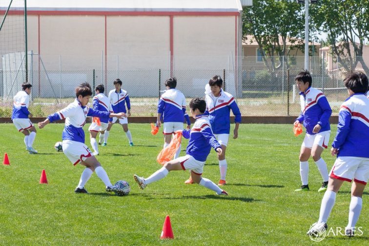 « Elles sont le reflet de leur pays, très carrées dans leur jeu, disciplinées sur et hors terrain », souligne Tom Carbonnel. Le jeune homme est l’agent de liaison de l’équipe féminine espoirs de Corée du Nord qui s’entraîne à Arles, à l’occasion du tournoi international Revello*-Sud Ladies Cup. La compétition se déroule du 7 au 17 mai, à Salon-de-Provence et aux alentours. La participation à cette compétition, réunissant sur cette édition 2019, sept pays : le Japon, le Gabon, le Guatemala, le Mexique, Haïti, la Corée du Nord, et la France, est une première pour les joueuses nord-coréennes, âgées de 16 à 18 ans, tout comme leur voyage en France. Si les matches se passent à Salon, Mallemort, Fos-sur-Mer… les entraînements et le lieu de résidence de chacune des équipes sont prévus dans d’autres villes du département. Arles a été choisie pour accueillir la délégation de Corée du Nord composée de 21 athlètes et 8 coaches. A la remarque qu’il n’est pas si fréquent de côtoyer des ressortissantes du pays dirigé par le chef suprême Kim Jung-un, Tom Carbonnel répond que c’est là, toute la magie du football, il permet d’ouvrir les frontières d’un Etat qu’on sait autoritaire. Et ajoute : « Elles sont super heureuses d’être ici et de pratiquer leur sport ». Il constate également à travers leur style de jeu très physique, leur comportement, le fait qu’elles ne possèdent pas de téléphone portable, la façon d’écouter leur hymne, toute la différence de notre culture avec la leur. « C’est surprenant et enrichissant. La distance du début de leur séjour et de notre travail ensemble s’est rompue. Nous faisons partie de la famille du foot », dit-il.