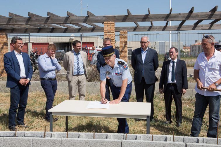 La pose de la première pierre, ce vendredi 28 juin 2019, était évidemment symbolique. Car des murs sont déjà dressés rue de la bouvine, sur le chantier de la future gendarmerie de Salin-de-Giraud, dont la livraison est prévue en septembre 2020. Elle sera constituée d’un bâtiment principal de 240m² et de sept logements pour les gendarmes de la brigade locale. La création de ces nouvelles installations était rendue nécessaire par la vétusté des locaux actuels. « Les conditions de vie des gendarmes et d’accueil de la population était à la limite de l’indignité. Le périmètre d’intervention de la brigade de Salin-de-Giraud est considérable, et ceux qui assurent la sécurité des habitants du village doivent travailler dans les meilleures conditions » a insisté David Grzyb, président du groupe Sempa (Société d’Economie Mixte du Pays d’Arles), qui a porté cette réalisation avec la Gendarmerie et la coopérative de construction UrbanCoop. Un projet qui s’élève à 1,7M€, et pour lequel la Ville d’Arles s’est portée garant. Le maire de la commune Hervé Schiavetti, le sous-préfet Chpilevsky et le conseiller départemental Nicolas Koukas se sont tour à tour félicités du lancement de ce chantier, rappelant leur attachement à l’institution que représente la gendarmerie.