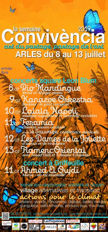 L’association Attention culture ! pose ses valises dans la cour de l’école Léon-Blum du 8 au 13 juillet où elle offre la Semaine de Convivència. La grande fête s’ouvre et se prolonge sur un répertoire éclectique de musiques du monde qui va s’accompagner de tables rondes et d’ateliers. Elle livrera un espace de partage de la culture et d’échanges d’idées autour de pratiques et de modes de vie respectueux de l’environnement, du climat et du bien-être commun, également de l’actualité avec le drame des migrants en Méditerranée. Le festival invite aussi des partenaires locaux qui travaillent sur des thématiques du zéro déchet ou de la transition énergétique. Entre réflexion et musiques, le village éphémère Convivència fera le plein de conversations, rencontres sans oublier des repas à la table d’une guinguette bio. Le groupe Rio Mandingue, métissé d’airs du Brésil et de l’Afrique, lance les festivités le 8 juillet à 19 heures.