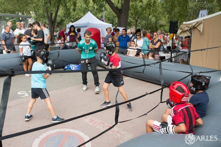 Le club de boxe de l’Association des jeunes Arlésiens a offert des démonstrations pendant la Fête des Associations. Photo O. Quérette / ektadoc – ville d’Arles