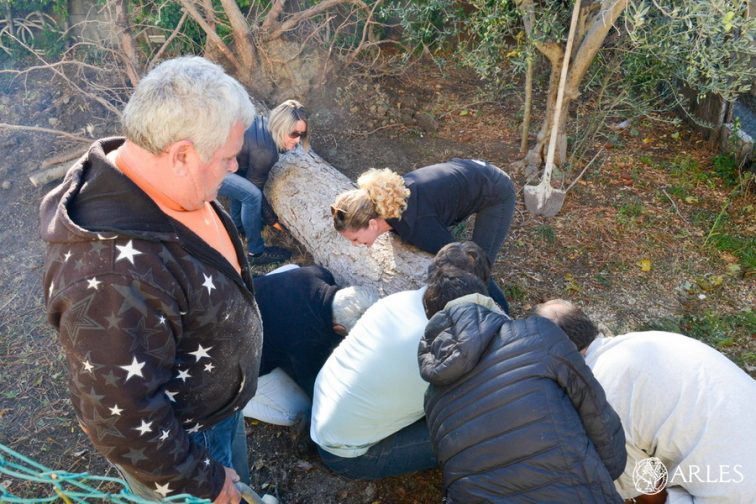 Des bénévoles aident à évacuer un arbre dans le jardin d’une sinistrée. Photo R.Boutillier / Ville d’Arles
