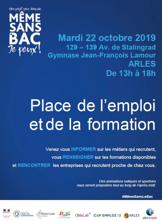 Mardi 22 octobre la tournée de la Place de l’emploi et de la formation fait étape à Arles, au gymnase Jean-François Lamour, de 13h à 18h.