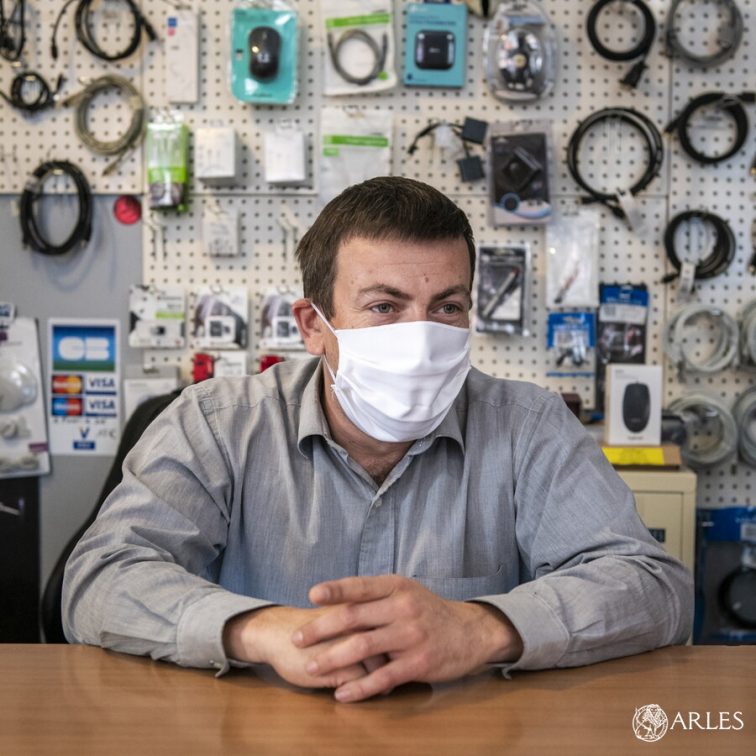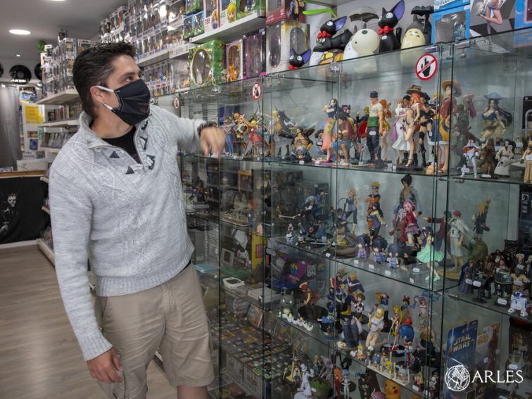 Même sollicitude et mêmes consignes chez Hobby One, la boutique située de l’autre côté de la rue. « Je privatise la boutique à la demande pour les personnes à risque et fragiles » détaille Lionel Reygner, le créateur de cet espace dédié à l’univers des jeux video. Parti au vert pendant le confinement, Lionel Reygner a gardé contact avec les habitués via les réseaux sociaux tout en remplissant de nombreux papiers pour obtenir les aides de l’Etat qui lui permettront de poursuivre son activité. « Le groupement des commerçants nous a fortement aidé durant tout le confinement, pour nous équiper en vue de la réouverture, des groupes WhatsApp ont été créés, on s’est réuni en visio-conférences. Il y a eu un vrai élan de solidarité entre les commerçants arlésiens ».