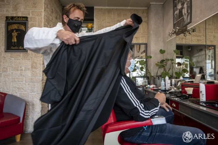Depuis le lundi 11 mai, les salons de coiffure ne désemplissent, comme David’Coup, barbier coiffeur, situé de l’autre côté du pont à Trinquetaille. « J’ai reçu jusqu’à 50 clients par jour et il y a du boulot ! » commente David Delepierre qui coupe, taille et shampouine les têtes des petits et grands Arlésiens depuis 25 ans. « Mais en ce moment, je ne taille plus les barbes, j’impose le masque à ces messieurs ! » précise David. Après chaque client, il désinfecte le matériel, chaises, tables, mais toujours avec le sourire et malgré un agenda rempli sur encore deux semaines pleines. « Vous voyez, je ne suis pas à plaindre, du boulot y en a !» plaisante David.