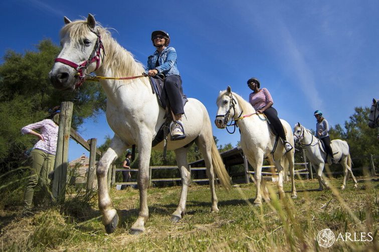Des balades permettent d’explorer le Domaine de la Palissade au pas des chevaux de race Camargue. photo F. Gardin/ville d’Arles