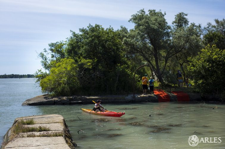 Les sorties kayak au domaine de la Palissade sont organisées dans le respect des gestes barrière : une personne par bateau, le guide étant muni d’un masque et de gants et les gilets désinfectés après chaque sortie. photo F. Gardin/ville d’Arles.