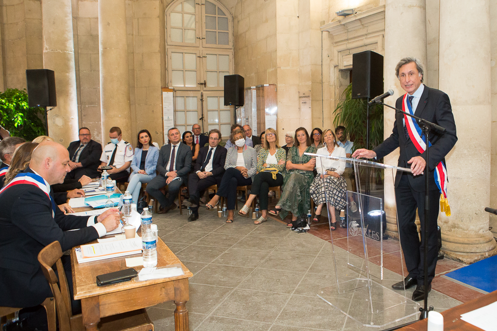 Après avoir donné la parole à Nicolas Koukas, conseiller municipal de l’opposition, le nouveau maire d’Arles a, au cours d’une courte allocution, manifesté sa reconnaissance aux Arlésiennes et aux Arlésiens qui l’ont choisi et souligné « la grandeur et l’humilité de la tâche » et le « travail infini » qui attendaient l’ensemble du nouveau conseil au service de tous les Arlésiens.