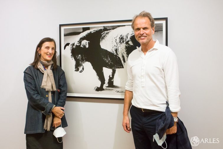 Bice Curiger, directrice artistique de la Fondation Vincent van Gogh – Arles et le collectionneur d’art contemporain Erling Kagge. Photo O. Quérette / ektadoc – ville d’Arles.