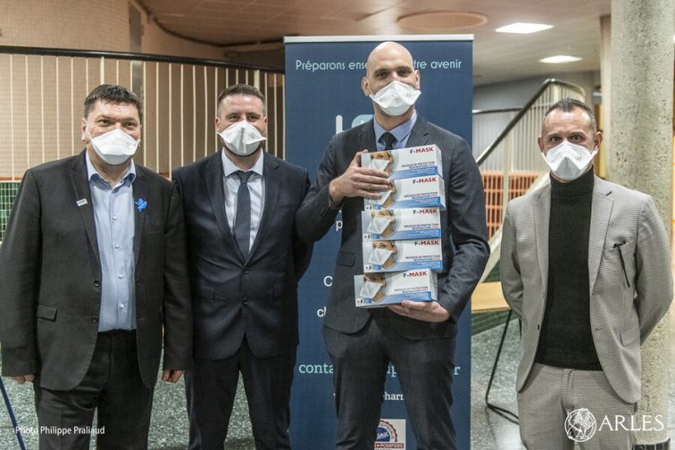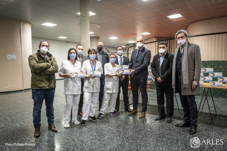 « Le cadeau que vous nous faites est particulièrement utile » a déclaré Laurent Donadille, le directeur de l’hôpital d’Arles en remerciant vivement les entreprises Lona Pharma et Prism, qui ont offert 1500 masques FFP2 à l’établissement, en présence du maire d’Arles, Patrick de Carolis, du premier adjoint, Jean-Michel Jalabert et de l’adjoint à la santé, Erick Souque, le 6 janvier 2021. « 1500 masques, c’est environ ce que nous utilisons en une semaine » a poursuivi Laurent Donadille.