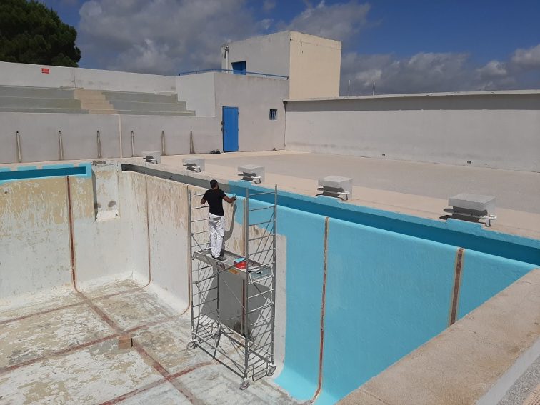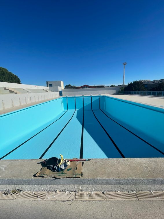 600 litres de peinture ont été appliqués dans la pataugeoire et les deux bassins.