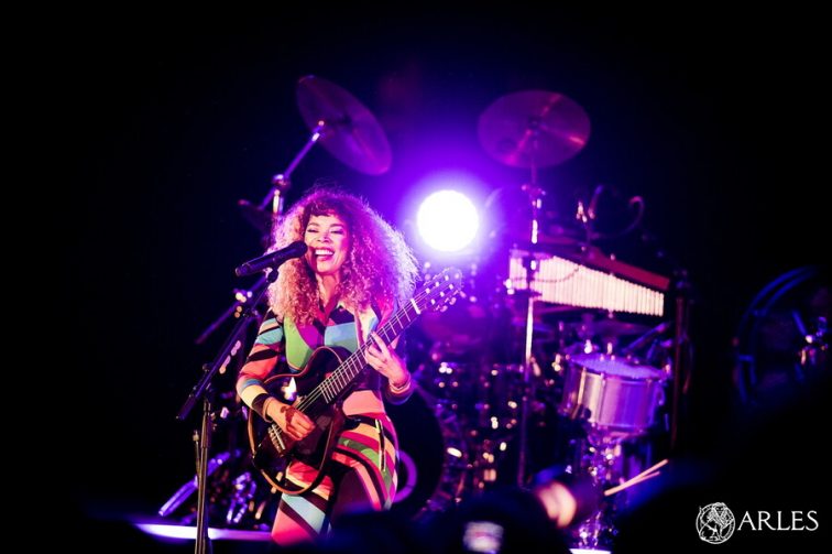 La brésilienne Flavia Coelho a enflammé le théâtre antique avec ses rythmes joyeusement métissés. photo F. Gardin/ville d’Arles.