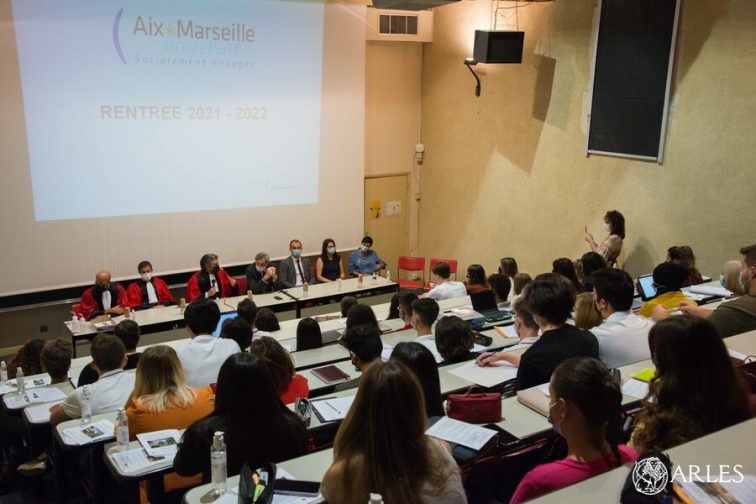 « Je suis très heureux de vous accueillir à Arles, de voir votre jeunesse dans nos murs, car le coeur d’une ville ne bat que par la jeunesse » : le maire d’Arles a accueilli les étudiants de la première année de licence en droit d’Aix-Marseille Université pour leur rentrée, le 3 septembre 2021, à l’amphithéâtre de l’antenne universitaire d’Arles. La séance, solennelle, a été ouverte par le doyen de la faculté de droit et de sciences politiques, Jean-Philippe Agresti, accompagné du vice-doyen, Frédéric Lombard, et de l’assesseur au doyen responsable de la licence de droit Arles, William Benessiano .