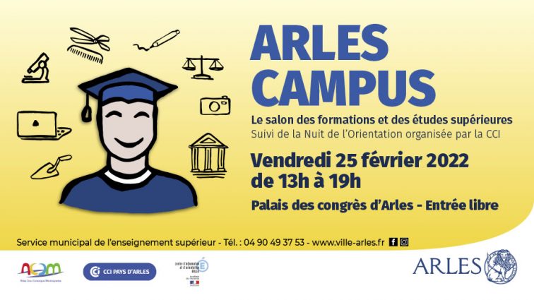 Quelles formations, quelles études supérieures menant à un métier ou à un cadre d’emploi, peut-on suivre à Arles ? A l’heure des décisions et des inscriptions, les collégiens, les lycéens, les étudiants seront accueillis au salon Arles Campus et à La Nuit de l’Orientation, vendredi 25 février au Palais des Congrès. Ils pourront rencontrer des représentants d’établissements scolaires et du supérieur, des conseillers d’orientation, des professionnels qui les aideront à bâtir leur projet pédagogique vers une future carrière.