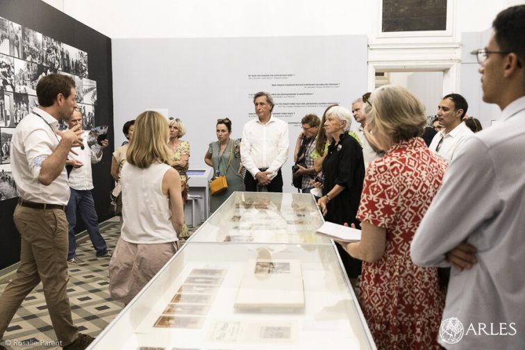 Le maire d’Arles, Patrick de Carolis, visite l’exposition consacrée aux archives de la Croix-Rouge. photo R. Parent/ville d’Arles.