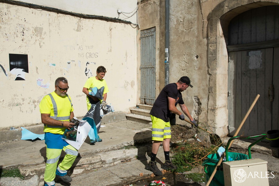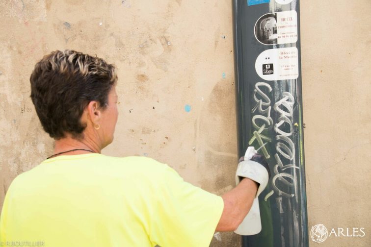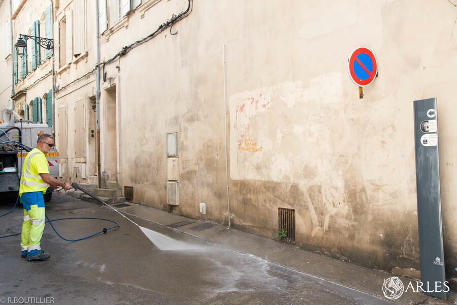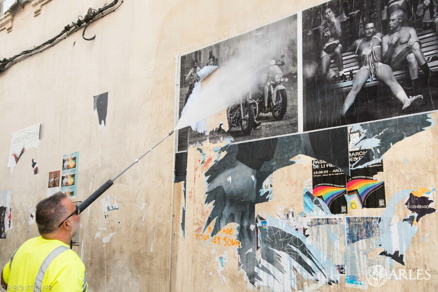 Une équipe du service nettoiement de la Ville est entrée en action dès 6 heures, ce matin du 24 août 2022 pour débarrasser les façades de l’affichage sauvage. Entre la place de la République, la rue de l’Hôtel-de-Ville, la rue du Cloître, la rue de la Bastille et l’enceinte du collège Saint-Charles, ce sont près de 100 m2 d’affiches posées sans aucune autorisation qui ont été nettoyés. Les agents utilisent principalement un camion qui permet de diffuser de l’eau chaude à très haute pression, avant de nettoyer le bitume des morceaux d’affiches pulvérisés.