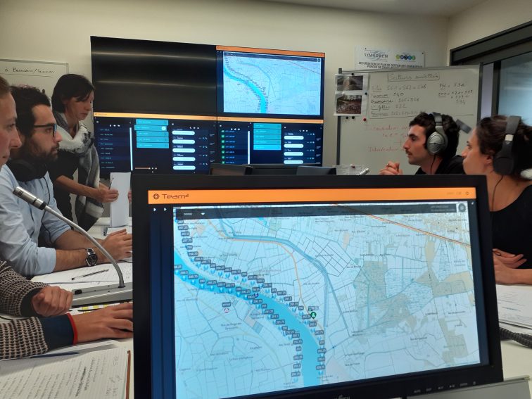 Il est 8h30, le Rhône atteint un débit de 9000m3 par seconde, l’alerte 2 est déclenchée. Voilà le scénario de départ de l’exercice imaginé par le Symadrem (Syndicat mixte d’aménagement des digues du Rhône et de la mer) mardi 15 novembre 2022. Une répétition grandeur nature de la conduite à tenir en cas de crue. L’objectif ? « S’approprier les procédures : qui fait quoi et comment ? Se familiariser avec les outils comme la radio et la cartographie. Et établir le contact avec les mairies, qui sont nos interlocutrices en cas de crue » détaille Séverine Chardes, responsable d’exploitation au Symadrem et pilote de l’exercice.