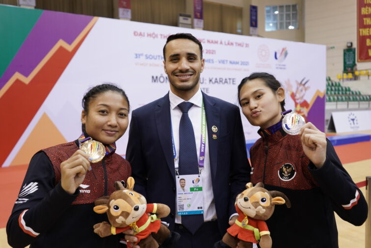 Après une brillante carrière d’athlète, l’Arlésien Farouk Abdesselem (ici au centre) a mis un terme à sa carrière d’athlète pour devenir entraîneur de l’équipe d’Indonésie de karaté. Photo DR