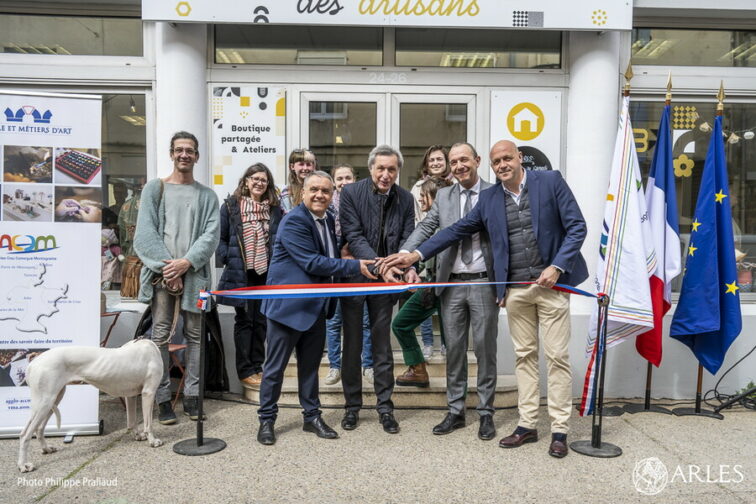 On peut parler de « coup de main » pour ceux dont justement, le métier s’appuie sur une maîtrise parfaite de leurs gestes. Le 29 mars 2023, un ruban bleu-blanc-rouge a été coupé devant le 24 rue Amédée-Pichot et la jolie boutique surmontée de l’enseigne « La place des artisans » par le maire d’Arles et président de la communauté d’agglomération Arles-Crau-Camargue-Montagnette, Patrick de Carolis, son premier adjoint et vice-président de la communauté d’agglomération, Jean-Michel Jalabert, ainsi que le président de la Chambre des métiers et de l’artisanat de la région Provence-Alpes-Côte d’Azur, Yannick Mazette et du président pour les Bouches-du-Rhône, Daniel Salenc.