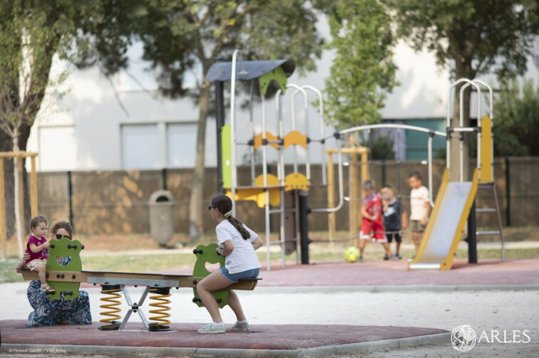 « J’ai joué là, moi, quand j’étais petite. Je suis contente de voir que mes enfants peuvent à leur tour s’amuser ici ! » Cette maman résume le sentiment général, ce 29 juin, alors que le maire d’Arles, Patrick de Carolis, inaugure l’aire de jeux de Plan-du-Bourg, à côté de l’école Louis-Aragon. Alors qu’il ne restait que quelques jeux en piteux état, le service des espaces verts de la Ville a ajouté aux jeux déjà sur place, une structure avec toboggan et une balançoire, des sols souples neufs, des bancs et trois nouveaux arbres. Deux blancs supplémentaires et 6 arbres, disposés afin d’ombrager l’aire de jeux, seront installés dans le courant de l’été et à l’automne.
