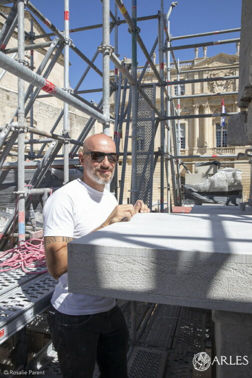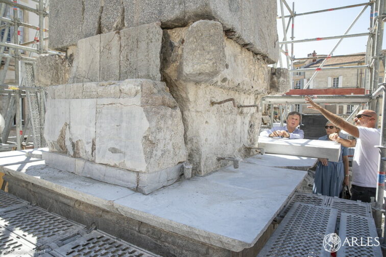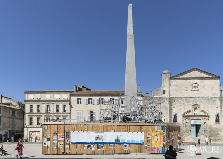 Autant d’étapes, menées avec minutie et patience, dans le respect du monument. « Quand on travaille sur un monument, on cherche toujours le traitement le plus appropriée, la pierre qui présente les caractéristiques les plus similaires, on fait du sur-mesure« , explique Jean Fernandez. « Ainsi, nous avons testé plusieurs modes de nettoyage avant de retenir celui qui nous a paru le mieux convenir. Nous avons finalement opté pour un micro-gommage réalisé avec un sable extrêmement fin. Toutes ces recherches expliquent la durée de nos chantiers » conclut le spécialiste. Aux Arlésiens de faire preuve de la même patience que les artisans qui lui rendent son éclat : l’obélisque restauré devrait être dévoilé dans le courant de l’automne.