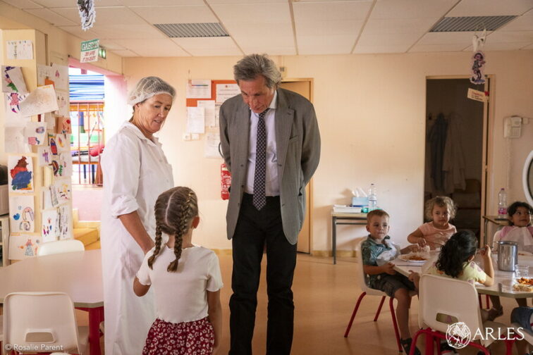 « Ici, même la salade elle est bonne » note Ismaël entre deux coups de fourchette. En ce jour de rentrée, pas de soupe à la grimace dans le réfectoire de l’école maternelle Victoria-Lyles, au Trébon. L’entrée est un succès, les tortellini à la sauce tomate encore plus, et le duo de dessert yaourt-fruit bios fait quasiment l’unanimité. A la table d’à côté, le maire d’Arles Patrick de Carolis et son adjoint à l’Education Frédéric Imbert ont partagé le même menu. Et relevé le calme remarquable dans lequel les enfants ont pris leur repas.