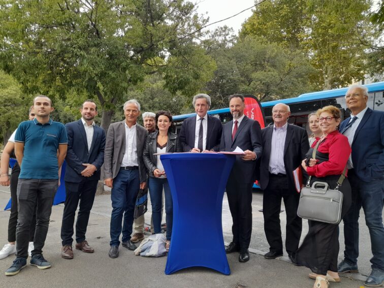 « Cela va représenter 63% de réduction de l’empreinte carbone du réseau, c’est donc une belle avancée écologique » s’est réjouit le président d’ACCM Patrick de Carolis jeudi 21 septembre, au moment de signer la délégation de service public avec le directeur de Transdev Sud, Antoine Seguret. « Nous allons au-delà de ce qu’exige la loi sur la transition écologique », fait remarquer Marie-Amélie Coccia. La vice-présidente d’ACCM en charge des transports informe par ailleurs qu’un nouveau réseau sera lancé à la rentrée 2024 avec des extensions d’horaires, de fréquences et de desserte des bus Envia.