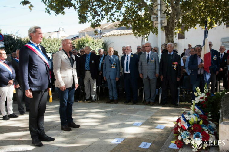 Au coeur d’une petite place ombragée par quatre vigoureux platanes, le monument aux morts de Mas-Thibert s’impose comme le lieu idéal pour reconnaître « la place que les harkis occupent dans l’histoire de France« , selon les mots de la secrétaire d’Etat auprès du ministre des Armées, chargée des Anciens combattants et de la Mémoire, Patricia Mirallès. Le 25 septembre 2023, autour de Kader Guelfout, président de l’association des rapatriés du pays d’Arles et de deux des fils du Bachaga Boualam, le maire d’Arles, Patrick de Carolis, et de nombreux élus du conseil municipal, le Préfet de la Région Provence-Alpes-Côte d’Azur, Christophe Mirmand, les élus de la Région et du Département, les représentants des associations d’anciens combattants, célébraient la Journée nationale d’Hommage aux Harkis et autres membres des formations supplétives ayant combattu durant la guerre d’Algérie. Une cérémonie qui, à Mas-Thibert, prend une force supplémentaire car c’est ici, qu’en 1962, le Bachaga Saïd Boualam, vice-président de l’Assemblée nationale de 1958 à 1962, s’est installé, avec des membres de sa famille.