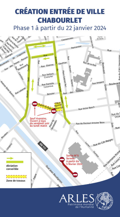 Dès le lundi 22 janvier 2024, le chemin de Bigot sera fermé à la circulation, du lundi matin au vendredi soir, pour une durée de deux mois environ, avec un accès maintenu pour les riverains en permanence. C’est sur cette voie et sur la place Franklin-Roosevelt que commenceront les travaux d’aménagement de l’entrée de ville Chabourlet.