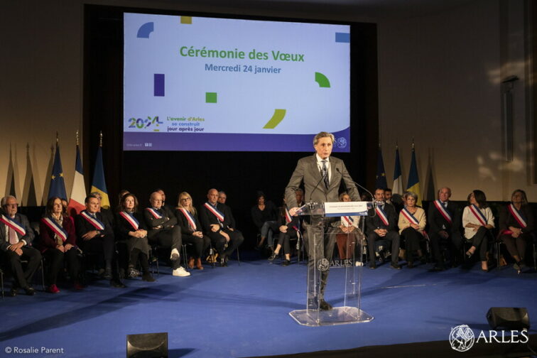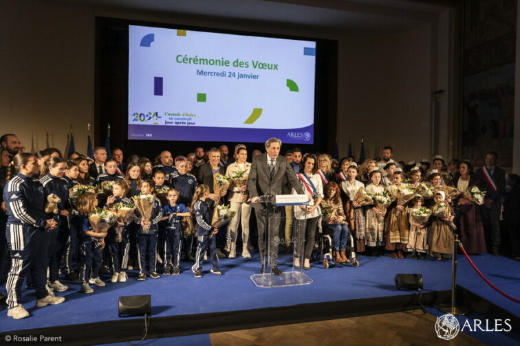 « Permettre aux Arlésiens de se projeter dans un avenir serein » : c’est le message que le maire d’Arles, Patrick de Carolis, a délivré lors de la cérémonie des voeux aux Arlésiens et aux corps constitués, le 24 janvier 2024, à la salle des fêtes d’Arles. C’est aussi l’objectif de toutes les actions entreprises depuis le début du mandat de l’équipe municipale, en 2020, et dont Patrick de Carolis, entouré des élus du conseil municipal, a donné le bilan au cours de cette soirée festive. « Nous travaillons intensément à rénover, entretenir l’héritage et préparer l’avenir« , a lancé le maire d’Arles avant d’évoquer les 50 km de routes refaits, les 2500 points d’éclairage changés, les 54 millions d’euros investis en trois ans et demi. Education, santé, sécurité, cadre de vie, transition écologique, économie et emploi : tous les secteurs sont concernés et de nombreux projets viendront encore renforcer cette dynamique.