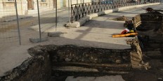 Devant le Théâtre antique, les travaux en cours ont mis à jour les dalles de l’ancienne chaussée romaine à plus d’un mètre de profondeur… C’était le Décumanus (est-ouest) qui coupait à angle droit le Cardo (nord-sud) au bas de la rue de la Calade. Le chantier sera interrompu pendant les fêtes de fin d’année et reprendra en janvier. Les vestiges seront recouverts de manière à être conservés en l’état et pouvoir faire l’objet de fouilles [...]